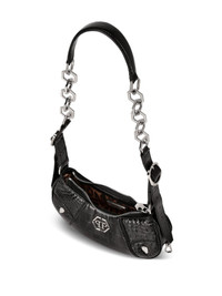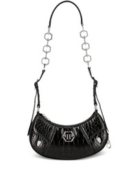 logo-plaque leather shoulder bag Highlights - Black - Calf-length - Embossed crocodile effect - Silver-tone logo plaque - Adjustable leather and chain-link shoulder strap - Top zip fastening - Main compartment - Internal logo plaque - Leopard print lining Made in Italy Composition Outer: Calf Leather 100%