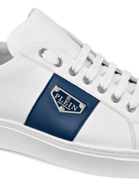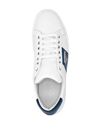 logo-plaque leather sneakers Highlights - White/dark blue - Calf leather - Panelled design - Logo plaque - Round toe - Front lace-up fastening - Contrasting heel counter - Branded leather insole - Flat rubber sole Made in Italy Composition Leather 100%