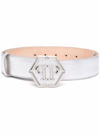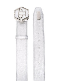 logo-plaque metallic belt silver leather metallic finish silver-tone logo plaque punched holes adjustable fit Made in Italy Composition Leather 100% SIZE & FIT Measurement Minimum Length 29.52 in(75 cm) TOTAL LENGTH 33.46 in(85 cm) WIDTH 1.57 in(4 cm)