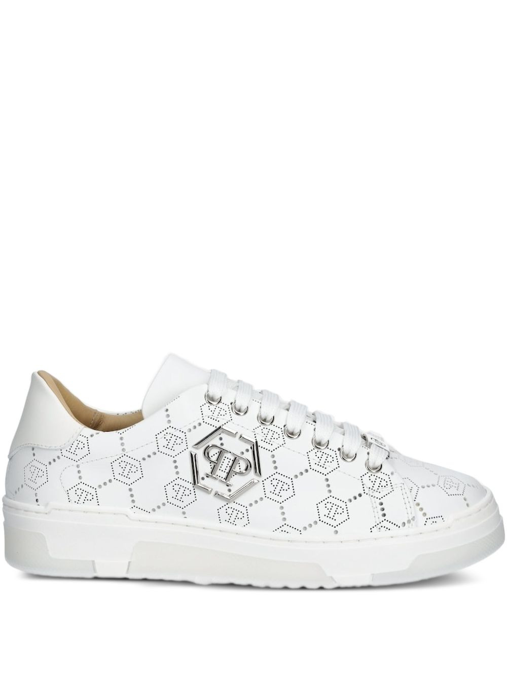 logo-plaque perforated sneakers Highlights - White - Perforated design - Logo plaque - Lace-up fastening - Flat sole - Leather upper Imported Composition Outer: Calf Leather 100% Sole: Rubber 100% Lining: Calf Leather 100%