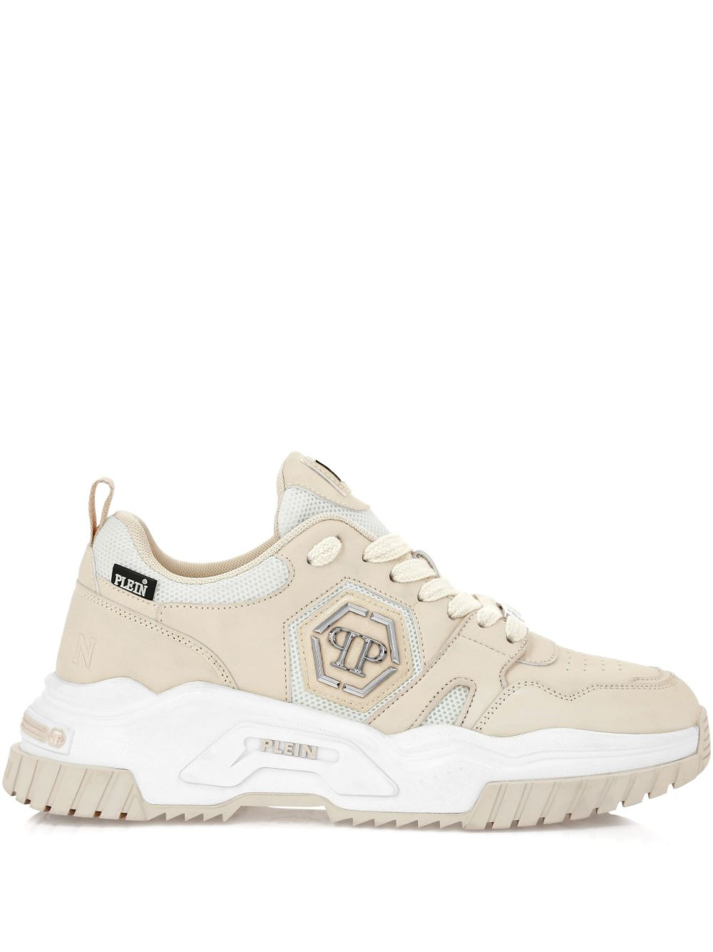 logo-plaque sneakers Highlights - Light beige - Front lace-up fastening - Chunky rubber sole - Pull-tab at the heel Imported Composition Outer: Calf Leather 100%, Mesh 100% Sole: Rubber 100% Lining: Mesh 100%