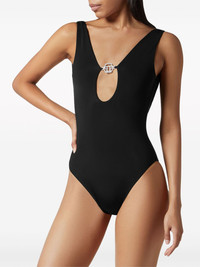 logo-plaque swimsuit Highlights - Black - Stretch-design - Cut-out detailing - Crystal embellishment - Silver-tone logo plaque - V-neck - Wide shoulder straps - Open back - Be mindful to try on swimwear over your own garments. Imported Composition Polyamide 80%, Elastane 20%