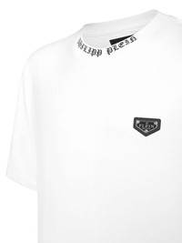 logo-plaque T-shirt Highlights - White - Cotton - Logo print to the front - Silver-tone logo plaque - Round neck - Short sleeves - Straight hem Imported Composition Cotton 100%, Polyester 100%