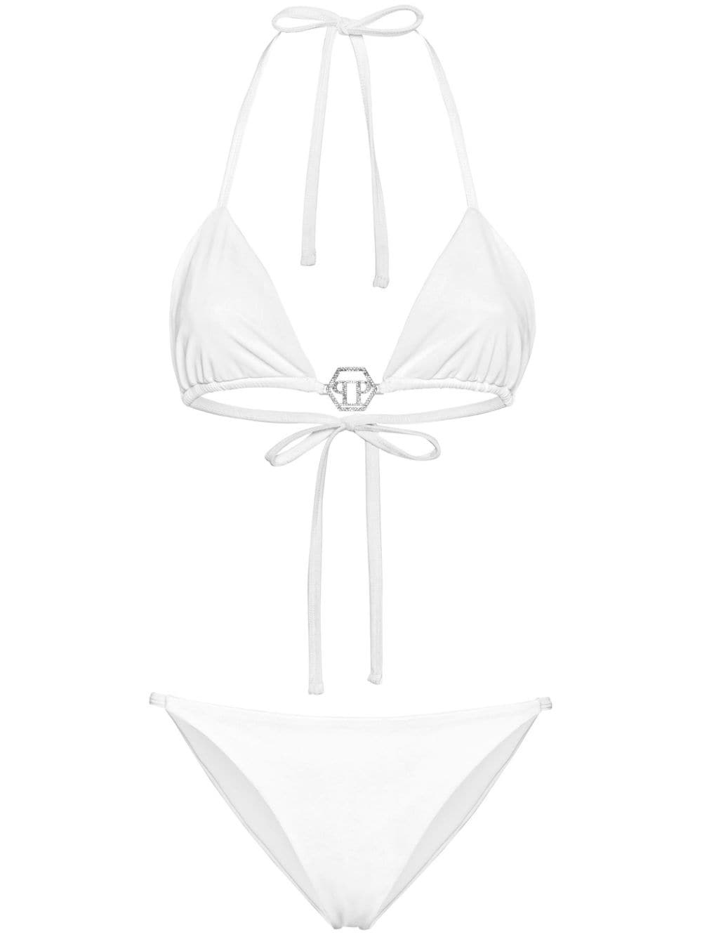 logo-plaque triangle bikini set Highlights - White - Stretch-design Imported Composition Polyamide 80%, Elastane 20%