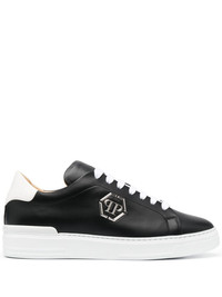 logo-plaque two-tone leather sneakers