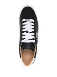 logo-plaque two-tone leather sneakers Highlights - Black/white - Calf leather - Smooth grain - Two-tone panelled design - Silver-tone logo plaque - Contrasting heel counter - Round toe - Front lace-up fastening - Branded leather insole - Flat rubber sole Made in Italy Composition Leather 100% SIZE & FIT Measurement HEEL 1.37 in(3.5 cm) Sole height 1.18 in(3 cm)