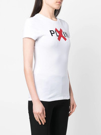 logo-print cotton T-shirt white/black/red cotton jersey knit logo print to the front crew neck short sleeves straight hem Imported Composition Cotton 100% SIZE & FIT Model measurements Height 5 ft 10 in(1.78 m) Bust/Chest 31.49 in(80 cm) Hips 36.22 in(92 cm) Waist 25.59 in(65 cm) FittingInformation This piece fits true to size. We recommend you get your regular size Cut for a slim fit Made with a mid-weight fabric Washing instructions Hand Wash