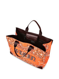 logo-print cotton tote bag Highlights - Orange - Cotton/leather - Silver-tone logo lettering - Logo print to the rear - Paisley print - Two top handles - Internal logo plaque - Internal zip-fastening pocket - Main compartment Made in Italy Composition Outer: Calf Leather 100% Lining: Cotton 100%