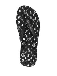 logo-print flip flops black/white two-tone design all-over logo print slip-on style round toe Imported Composition Sole: Polyethylene vinyl acetate (PEVA) 100% Outer: Polyurethane 100% Lining: Polyurethane 100% SIZE & FIT Measurement HEEL 0.59 in(1.5 cm)