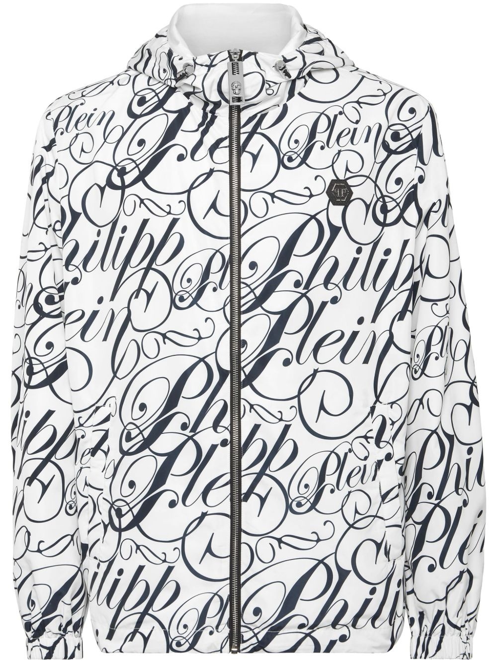 logo-print jacket Highlights - White - Front zip fastening - Drawstring hood - Two side welt pockets - Logo plaque Imported Composition Outer: Polyester 100% Lining: Polyester 100%