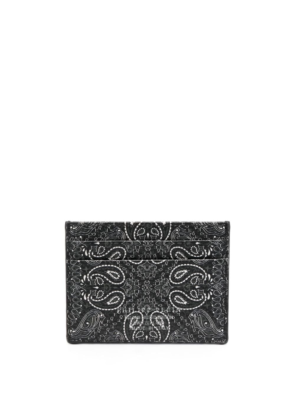 logo-print leather cardholder Highlights - Black - Calf leather - Logo print to the front - Paisley print - Card slots - Main compartment Made in Italy Composition Outer: Calf Leather 100% SIZE & FIT Measurement LENGTH 3.93 in(10 cm) WIDTH 3.14 in(8 cm)