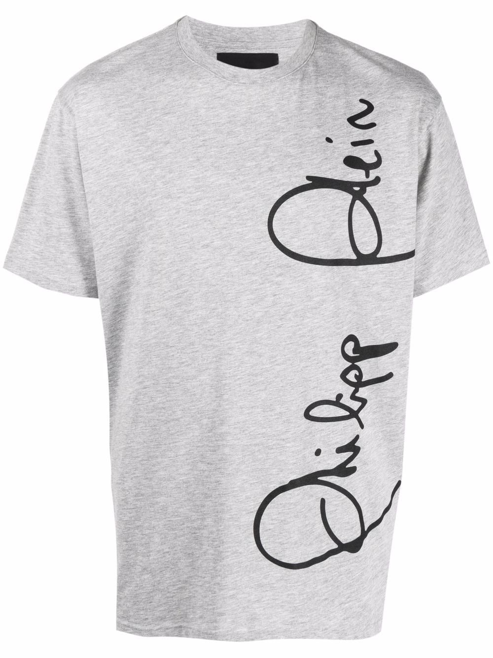 logo-print short-sleeved T-shirt pale grey cotton-blend logo print to the front round neck short sleeves straight hem Imported Composition Polyester 70%, Cotton 30% SIZE & FIT Model measurements Height 6 ft 2 in(1.87 m) Bust/Chest 36.61 in(93 cm) Hips 35.03 in(89 cm) Waist 27.95 in(71 cm) FittingInformation This piece fits true to size. We recommend you get your regular size Cut for a relaxed fit Made with a mid-weight fabric Washing instructions Hand Wash