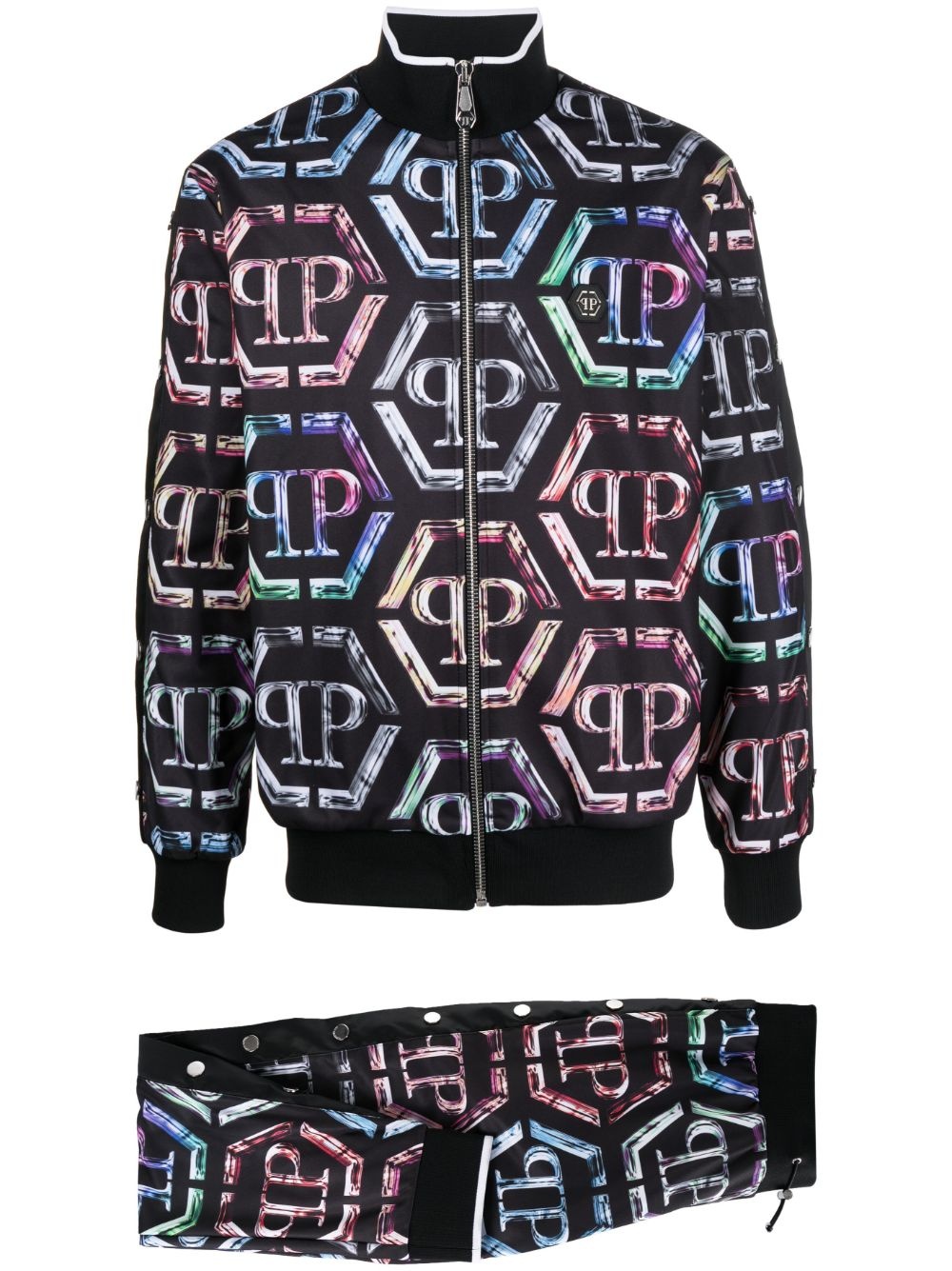 logo-print stretch-cotton tracksuit Highlights - Black/multicolour - All-over logo print - Silver-tone stud embellishment Imported Composition Cotton 95%, Elastane 5% SIZE & FIT Model measurements Height 6 ft 1 in(1.85 m) Bust/Chest 35.82 in(91 cm) Hips 37.79 in(96 cm) Waist 29.13 in(74 cm) FittingInformation Designed for a relaxed straight leg, allowing a comfortable and loose fit over the leg Adjust this piece’s waistband to your preference using the drawstring Made from a midweight stretch fabric, this piece offers elasticity and flexibility when worn This piece fits true to size – take your usual size