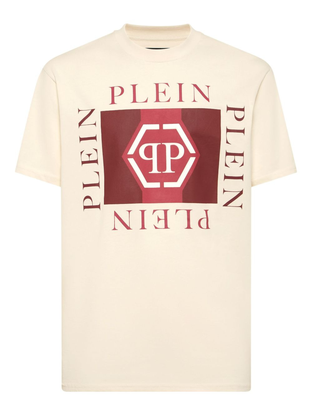 logo-print T-shirt Highlights - Cream - Bold logo print - Hexagonal design - Contrasting text - Short sleeves - Crew neck Imported Composition Cotton 100% Washing instructions Read Manufacturer Guidelines