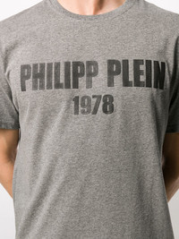 logo print T-shirt Philipp Plein's collection exudes hard-edged decadence with an intricate focus upon detailing. Crafted in Italy and constructed from grey cotton blend, this logo print T-shirt from Philipp Plein features a round neck, a printed logo to the front, short sleeves and a straight hem. Made in Italy Composition Cotton 70%, Polyester 30% SIZE & FIT Model measurements Height 6 ft 2 in(1.87 m) Bust/Chest 37.79 in(96 cm) Hips 37.79 in(96 cm) Waist 30.31 in(77 cm) FittingInformation This piece fits true to size. We recommend you get your regular size Cut for a relaxed fit Washing instructions Hand Wash