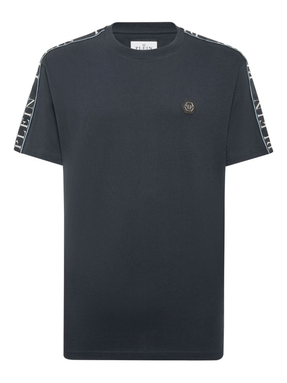 logo-print T-shirt Highlights - Navy blue - Logo print on shoulders - Round neckline - Short sleeves - Logo patch at the chest Imported Composition Cotton 100%, Polyester 100% Washing instructions Read Manufacturer Guidelines