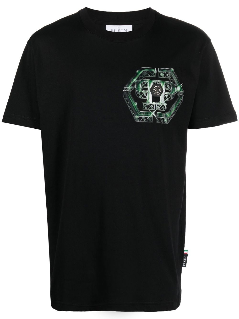 logo print T-shirt black/multicolour cotton logo print at the chest graphic print to the rear crew neck short sleeves straight hem Made in Italy Composition Cotton 100% SIZE & FIT Model measurements Height 6 ft 1 in(1.85 m) Bust/Chest 31.88 in(81 cm) Hips 33.07 in(84 cm) Waist 26.77 in(68 cm) FittingInformation This piece fits true to size. We recommend you get your regular size Cut for a relaxed fit Made with a mid-weight fabric Washing instructions Machine Wash