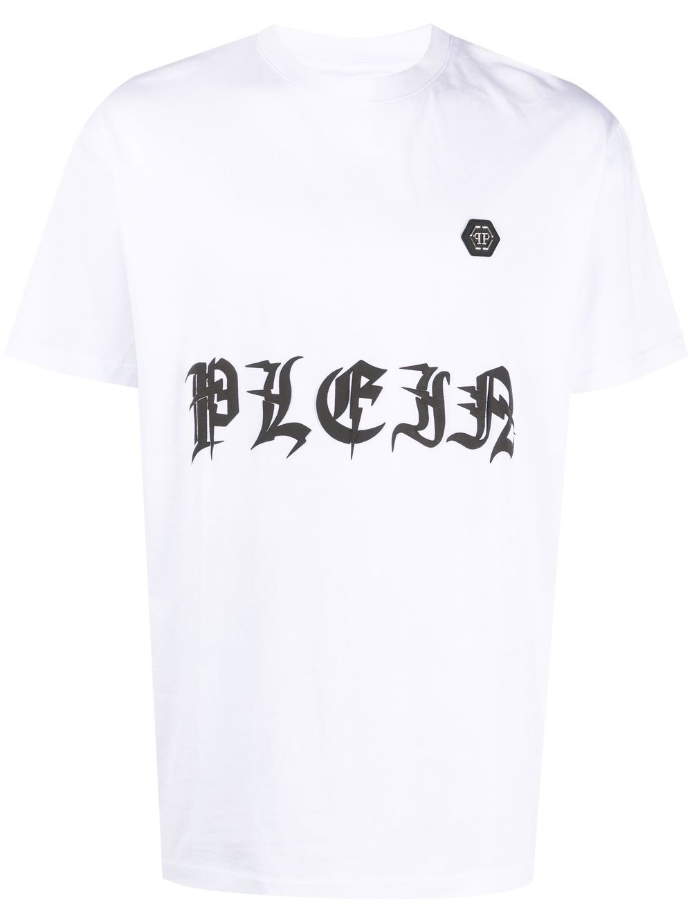 logo-print T-shirt white/black cotton blend logo patch at the chest logo print to the front round neck short sleeves straight hem Imported Composition Cotton 95%, Spandex/Elastane 5% SIZE & FIT Model measurements Height 6 ft 1 in(1.86 m) Bust/Chest 34.64 in(88 cm) Hips 35.43 in(90 cm) Waist 27.55 in(70 cm) Washing instructions Hand Wash