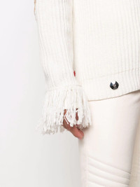 Love Plein ribbed-knit jumper cream wool-cashmere blend ribbed knit fringe detailing embroidered slogan logo plaque round neck long sleeves elbow patches Made in Italy Composition Polyamide 35%, Wool 30%, Viscose 30%, Cashmere 5% SIZE & FIT Model measurements Height 5 ft 11 in(1.8 m) Bust/Chest 33.07 in(84 cm) Hips 37.4 in(95 cm) Waist 25.19 in(64 cm) FittingInformation Designed to be unstructured, offering a loose fit throughout Made with a midweight knit, this piece offers some stretch This piece fits true to size – take your usual size Washing instructions Hand Wash