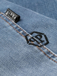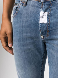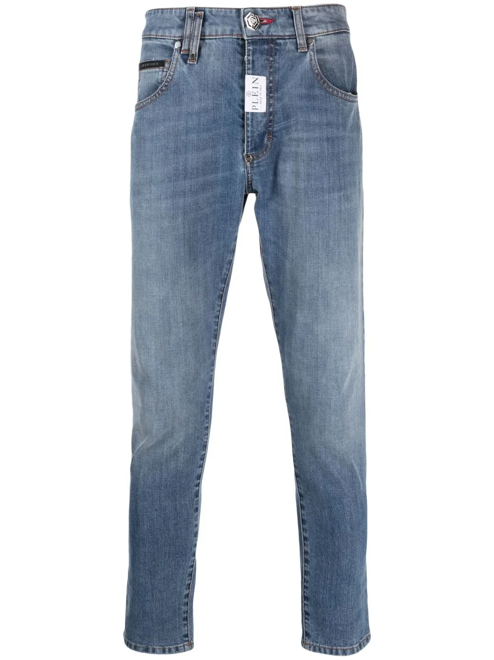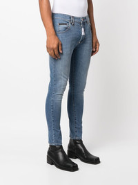 low-rise skinny jeans Highlights - Blue - Cotton blend - Skinny cut - Low-rise - Logo patch to the front - Belt loops - Button fly fastening - Classic five pockets Made in Italy Composition Lining: Polyester 65%, Cotton 35% Outer: Cotton 98%