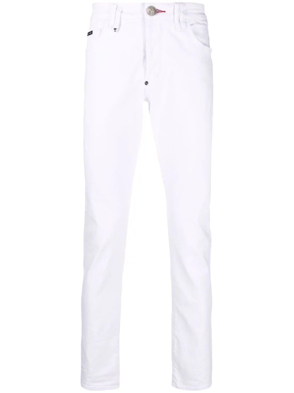 low-rise straight-leg jeans white Imported Composition Outer: Cotton 98%, Spandex/Elastane 2% Lining: Polyester 65%, Cotton 35% SIZE & FIT Model measurements Height 6 ft 1 in(1.86 m) Bust/Chest 38.58 in(98 cm) Hips 38.18 in(97 cm) Waist 27.95 in(71 cm) FittingInformation This piece fits true to size. We recommend you get your regular size Cut for a slim fit Made with a mid-weight stretch fabric Washing instructions Hand Wash