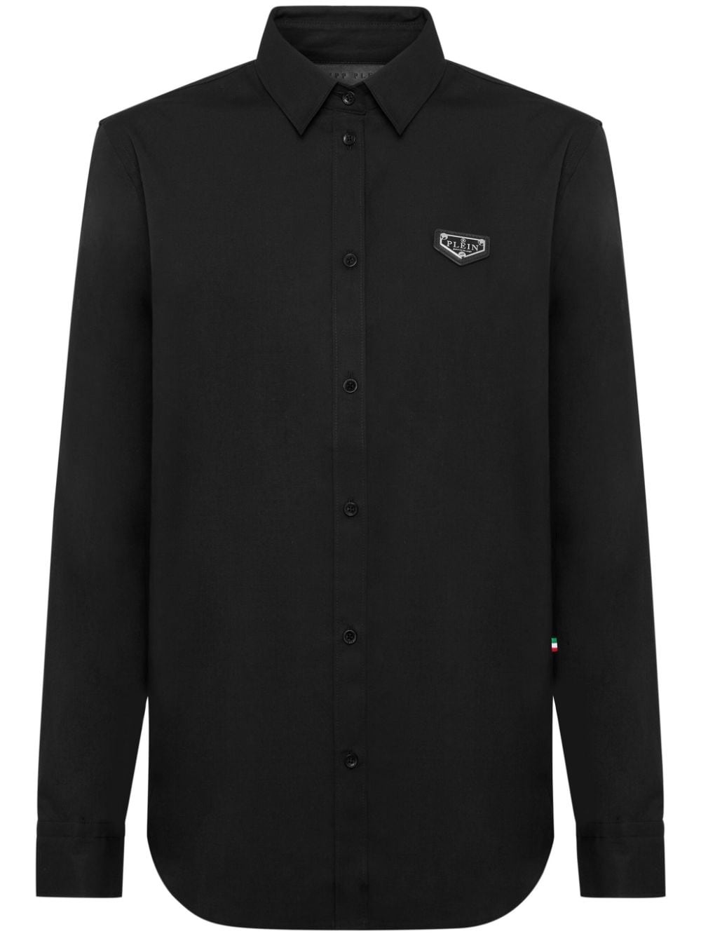 LS Iconic Plein poplin shirt Highlights - Black - Poplin texture - Logo patch at the chest - Classic collar - Front button fastening - Long sleeves - Buttoned cuffs - Curved hem Made in Italy Composition Outer: Cotton 100%