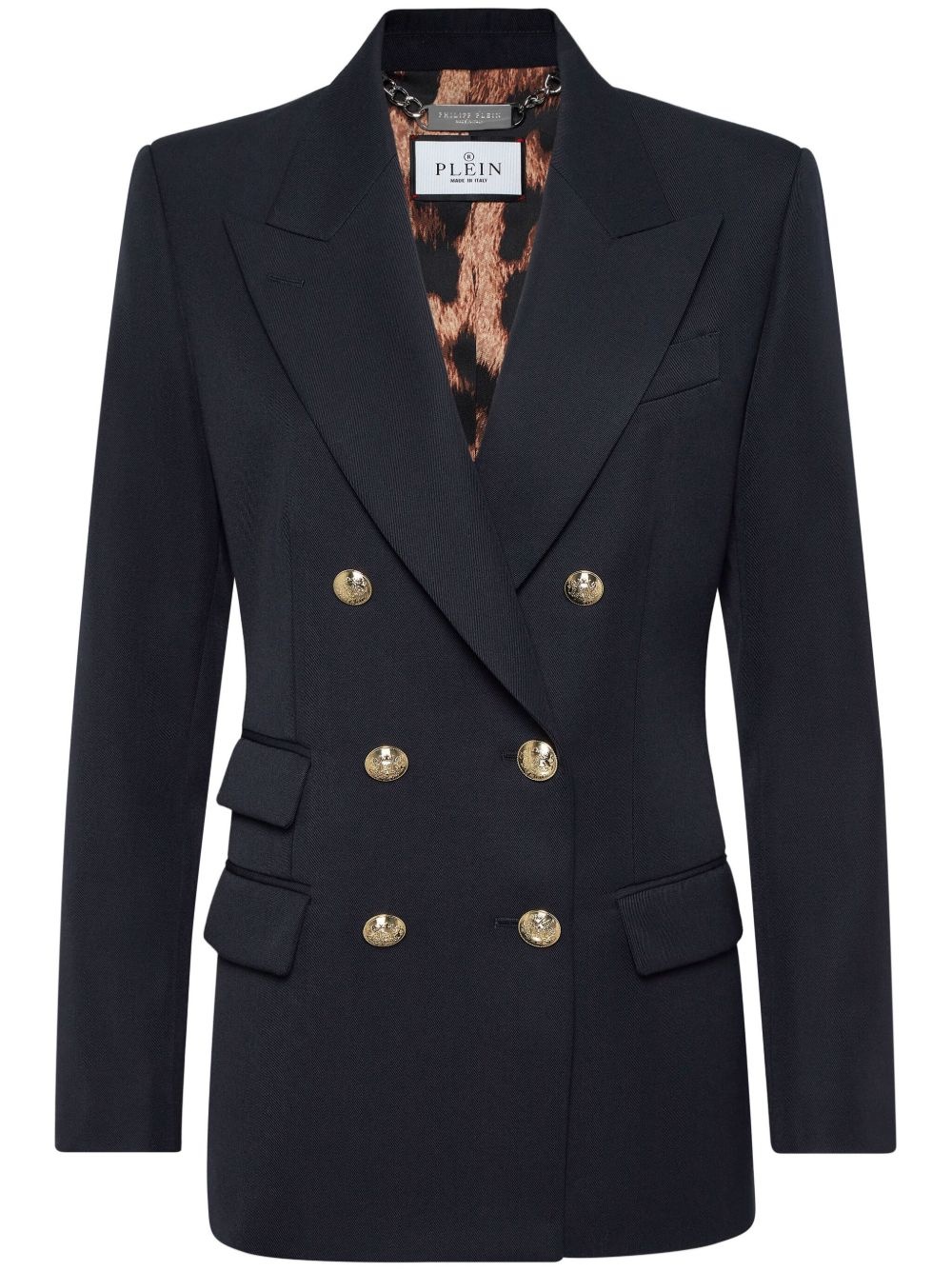 Marine-fit wool blazer Highlights - Navy blue - Double-breasted button fastening - Front flap pockets - Buttoned cuffs - Central rear vent Made in Italy Composition Lining: Polyester 100% Outer: Polyester 55%, Viscose 45%
