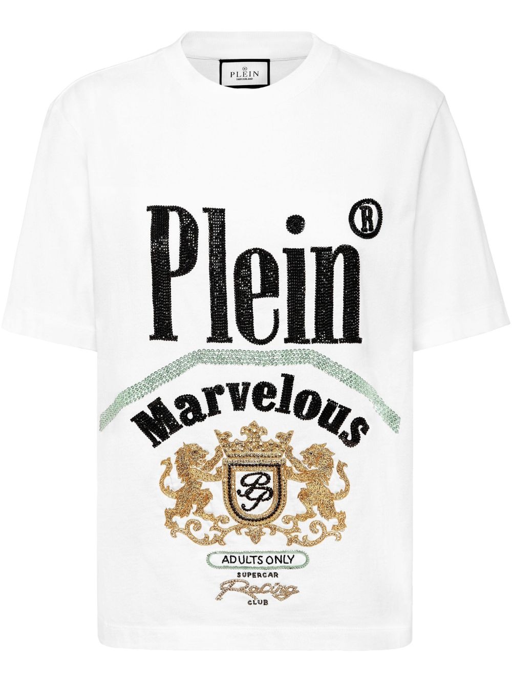 Marvelous t-shirt Highlights - White - Crew neck - Rhinestone embellishment - Short sleeves - Straight hem Imported Composition Cotton 95%, Elastane 5%