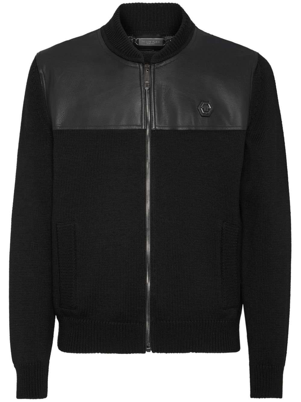 Skull bomber jacket Highlights - Black/grey - Calf leather - Merino wool - Front zip fastening - Long sleeves - Logo patch at the chest - Ribbed cuffs and hem - Skull embroidery to the rear - Straight hem Made in Italy Composition Calf Leather 100%, Merino 100%