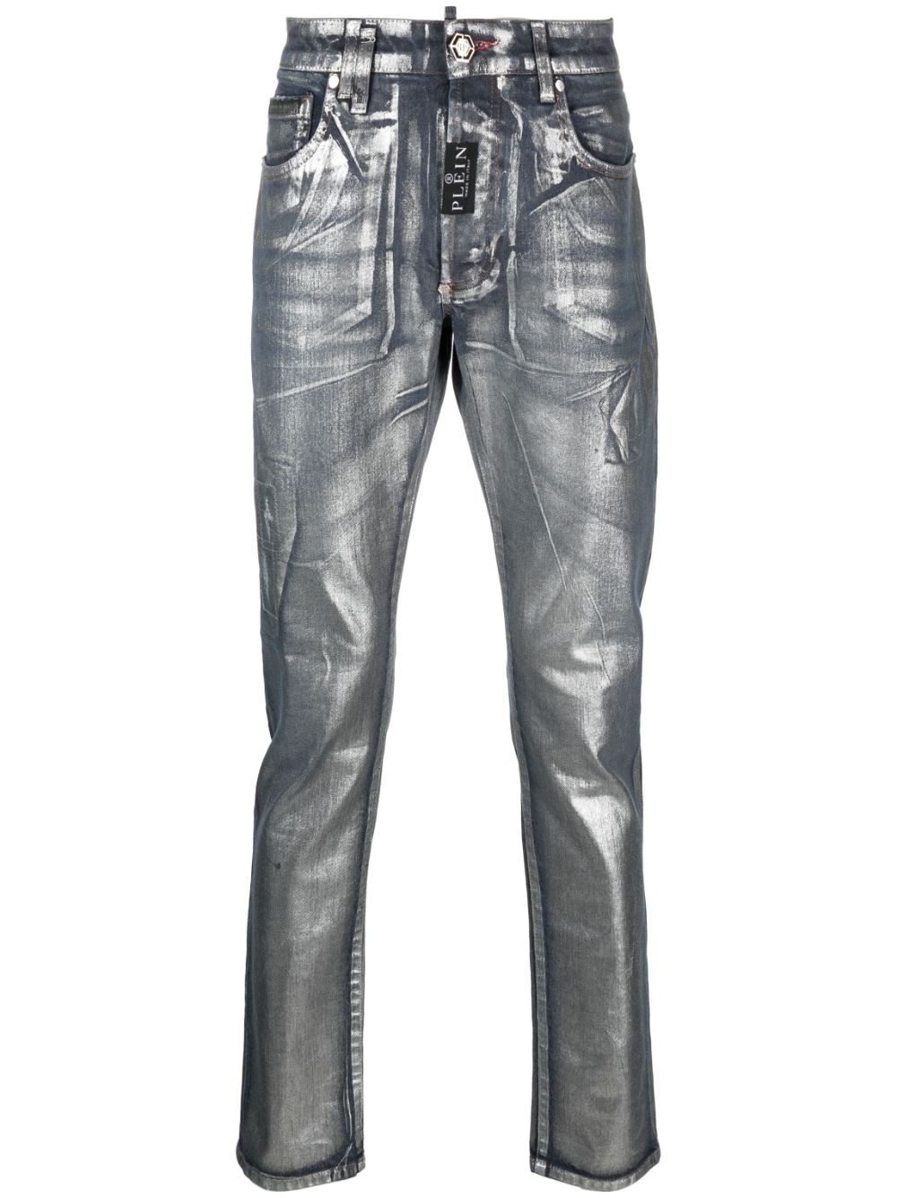 metallic-effect straight-leg jeans Highlights - Electric blue - Cotton blend - Denim - Metallic effect - Logo tag - Logo patch to the rear - Belt loops - Front button fastening - Classic five pockets - Straight leg Made in Italy Composition Outer: Cotton 98%, Elastane 2% Lining: Polyester 65%, Cotton 35% SIZE & FIT Model measurements Height 6 ft 2 in(1.88 m) Bust/Chest 37.79 in(96 cm) Hips 35.82 in(91 cm) Waist 29.92 in(76 cm) FittingInformation Designed with a straight leg, these jeans allow for an unrestricted and comfortable fit over the leg Constructed from stretch denim, this piece offers a stretch fit with durability This piece fits true to size – take your usual size Washing instructions Read Manufacturer Guidelines