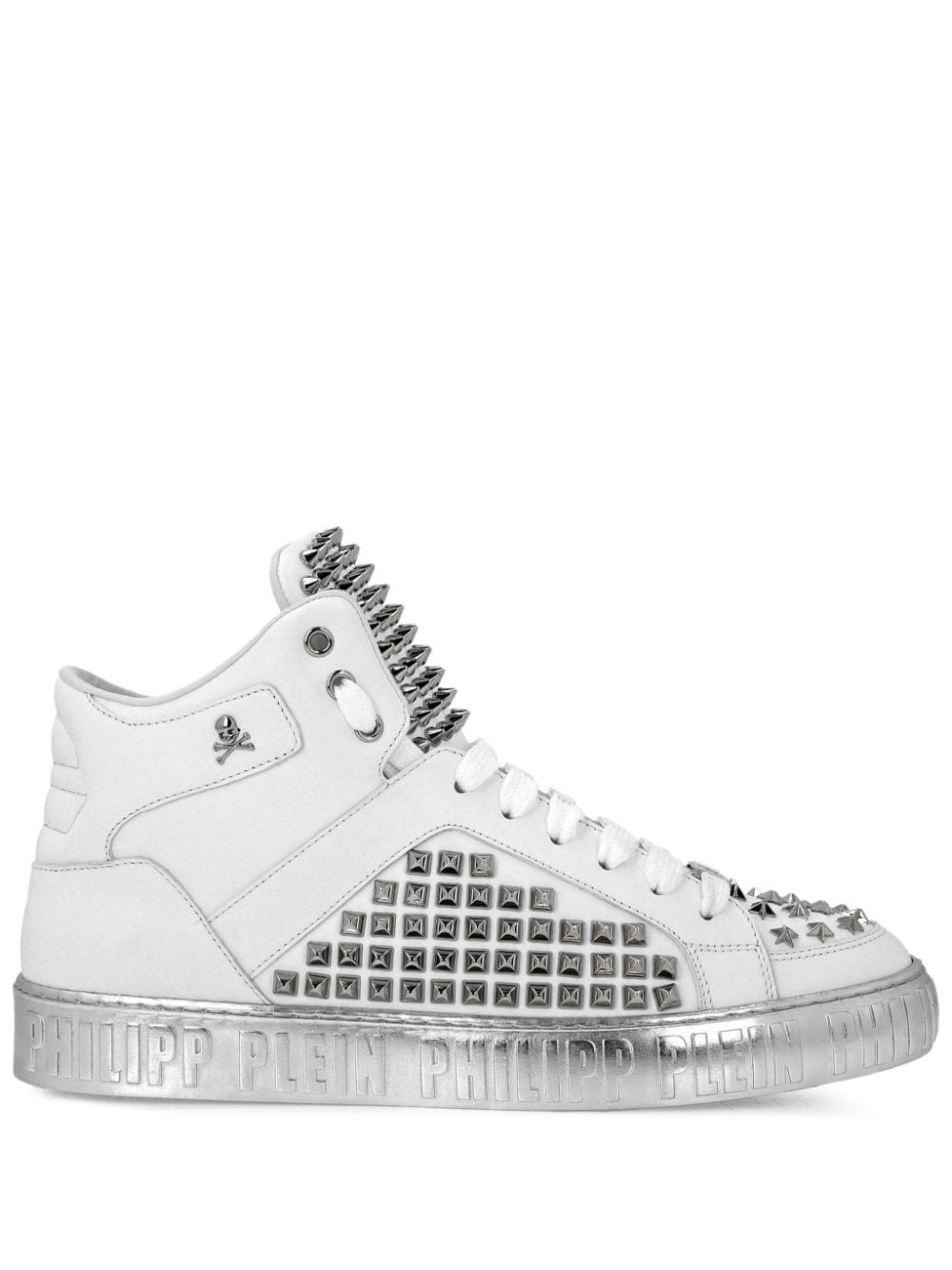 stud-detail leather sneakers Highlights - White - Calf leather - Skull stud detailing - All-over embossed logo print - Star stud detailing - Spike stud detailing - Round toe - Front lace-up fastening - Branded insole - Rubber sole Made in Italy Composition Leather 100%