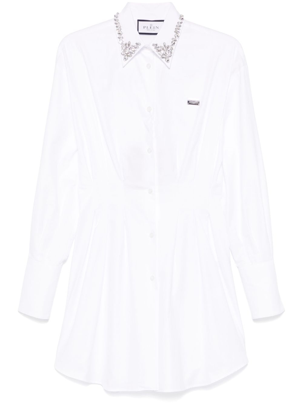 mini shirt dress Highlights - White - Front button placket - Buttoned cuffs - Silver-tone logo plaque - Crystal embellishment Made in Italy Composition Cotton 100% SIZE & FIT Model measurements Height 5 ft 10 in(1.77 m) Bust/Chest 29.92 in(76 cm) Hips 34.25 in(87 cm) Waist 23.62 in(60 cm) FittingInformation Designed for a slim fit that sits just away from the body offering a close yet comfortable fit Made from a midweight non-stretch fabric