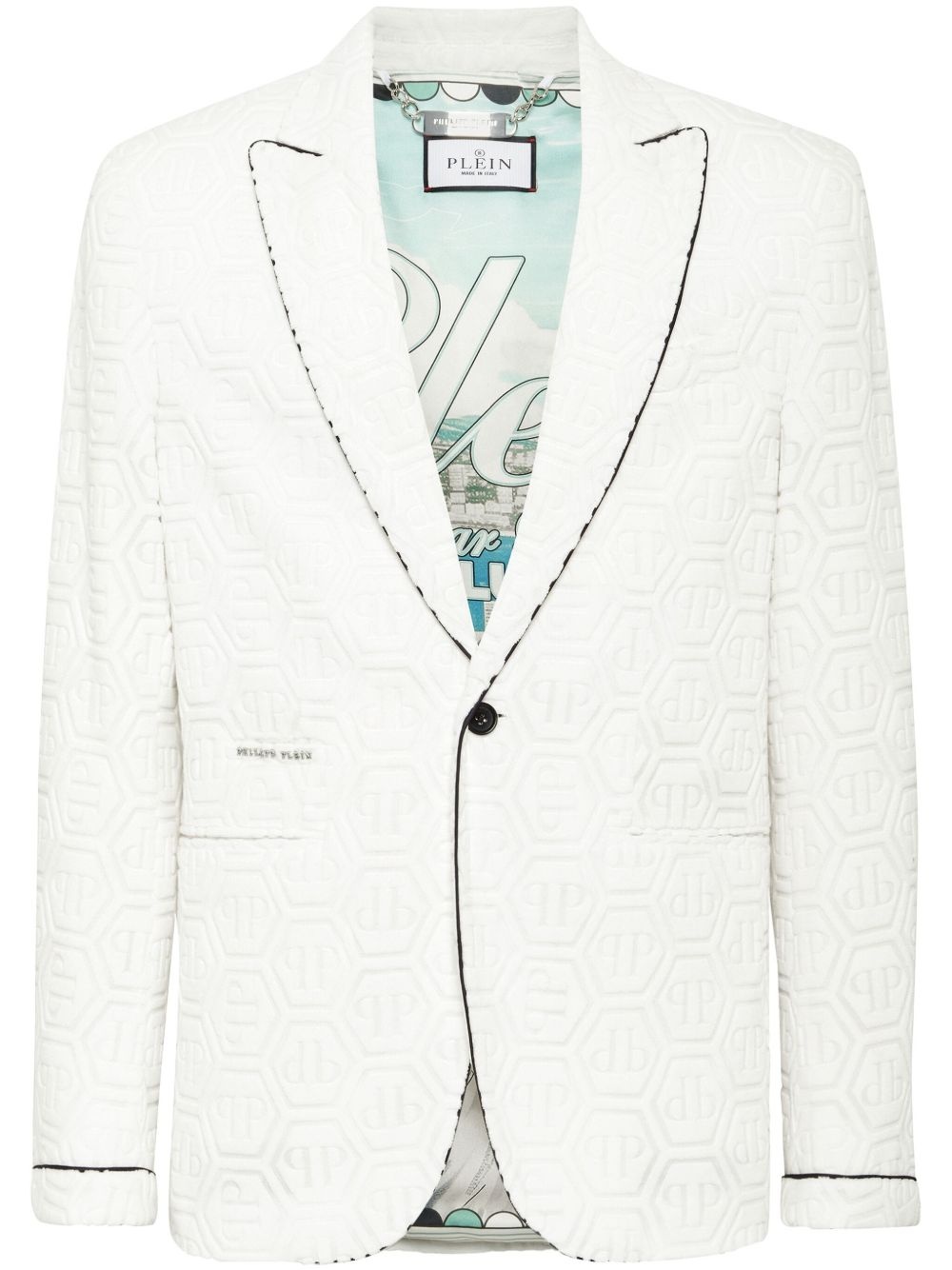 monogram blazer Highlights - White - Front button fastening - Two side slit pockets - Buttoned cuffs - Contrasting trim Made in Italy Composition Outer: Cotton 80%, Polyester 20% Lining: Polyester 100%