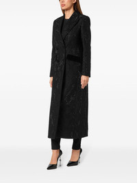 monogram crystal double-breasted coat Highlights - Black - Crystal embellishment - Monogram pattern - Double-breasted button fastening - Peak lapels - Long sleeves - Two front flap pockets - American rear vent - Straight hem Made in Italy Composition Outer: Cotton 100%, glass 100%, Virgin Wool 70%, Polyamide 20%, Cashmere 10% Lining: Viscose 51%, Acetate 49%