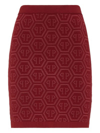 Monogram knitted mini skirt Highlights - Burgundy - Mini length - Knitted fabric - Monogram pattern Made in Italy Composition Fabric 100% Washing instructions Read Manufacturer Guidelines