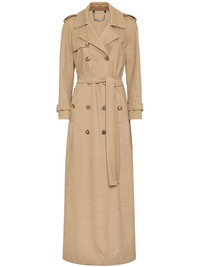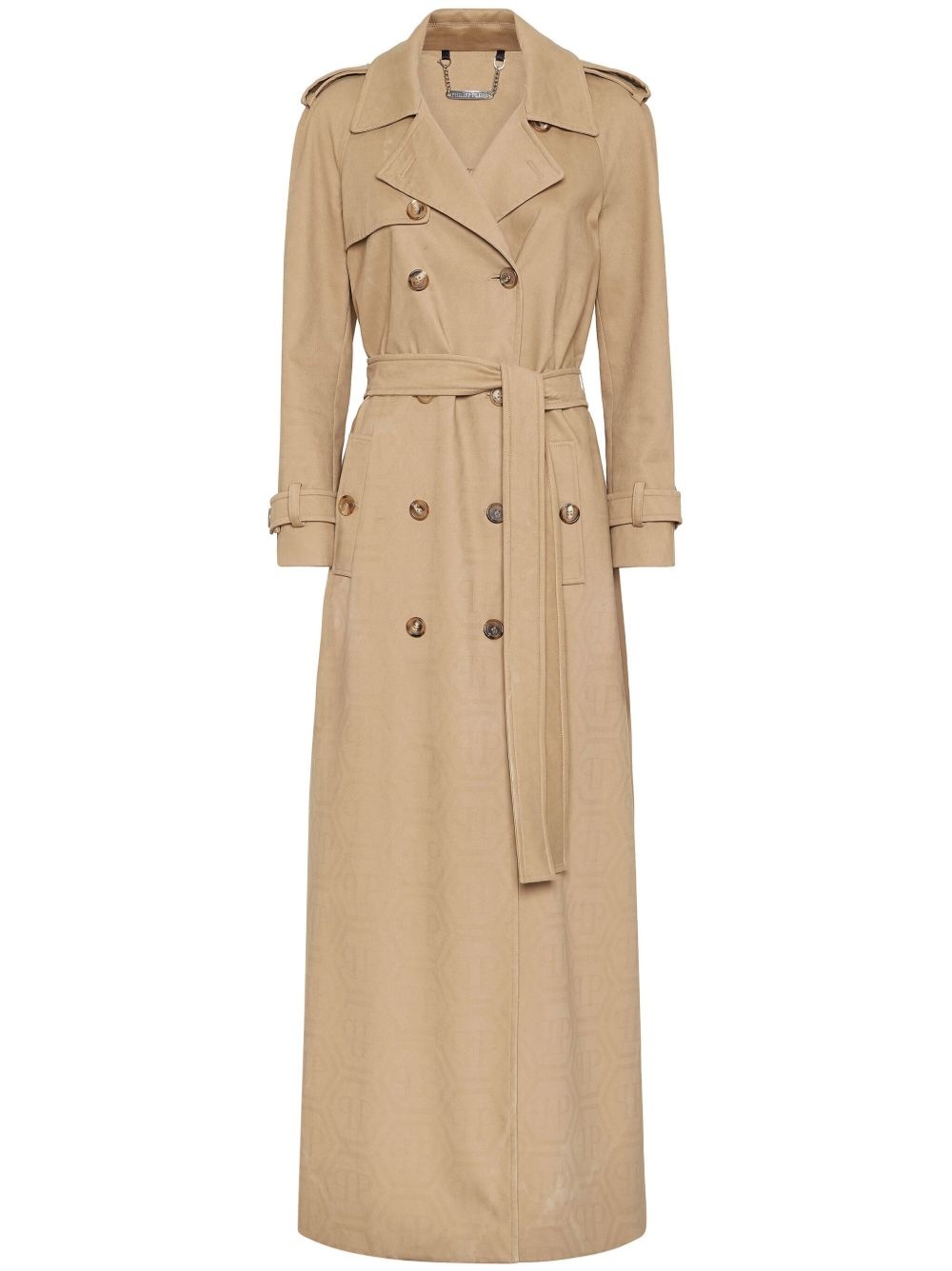 monogram long trench coat Highlights - Beige - Cotton blend - Applique logo - Monogram pattern - Notched lapels - Double-breasted button fastening - Belted waist - Two side button-fastening pockets - Long sleeves - Straight hem - Central rear vent Made in Italy Composition Cotton 98%, Spandex/Elastane 2%