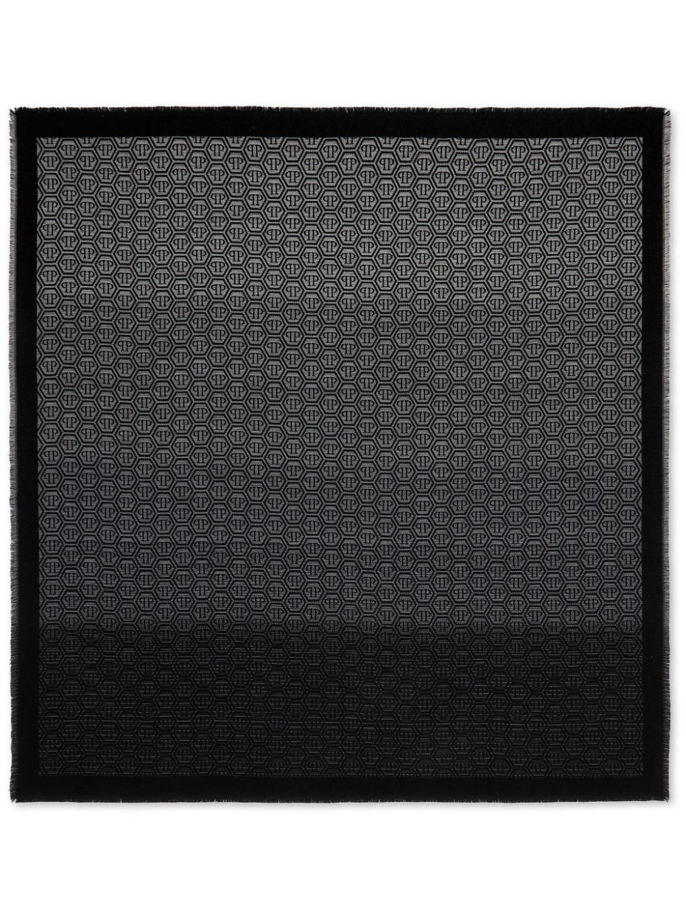 monogram-pattern gradient-effect scarf Highlights - Black/grey - Wool blend - Monogram pattern - Gradient effect - Stripe trim - Square shape Made in Italy Composition Wool 70%, Acrylic 30% Washing instructions Read Manufacturer Guidelines