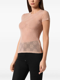 monogram-pattern tulle T-shirt Highlights - Rose pink - Crew neck - Short sleeves - Straight hem Imported Composition Fabric 100%