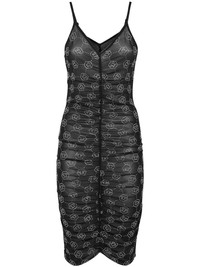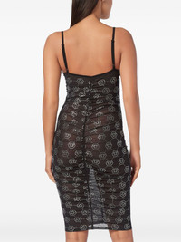 monogram tulle dress Highlights - Black - Tulle overlay - Monogram pattern - Rhinestone embellishment - V-neck - Adjustable spaghetti straps - Knee-length - Straight hem Imported Composition Glass Fiber 100%, Polyester 66%, Spandex/Elastane 34%