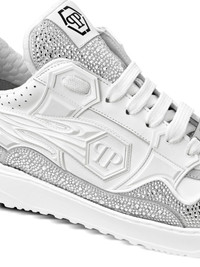 Moon Walker low-top sneakers Highlights - White - Front lace-up fastening - Two-tone design - Rhinestone embellishment - Logo patch to the side Made in Italy Composition Outer: Calf Leather 100%, CALFSKIN 100%, Glass Fiber 100%, Polyurethane 74%, Polyester 21%, Cotton 5% Lining: Polyester 90%, Elastodiene 10% Sole: Synthetic Rubber 100%