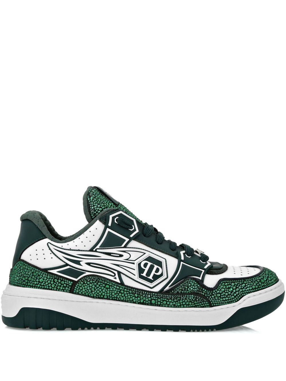 Moon Walker low-top sneakers Highlights - Green - Front lace-up fastening - Two-tone design - Rhinestone embellishment - Logo patch to the side Made in Italy Composition Outer: CALFSKIN 100%, Calf Leather 100%, Glass Fiber 100%, Polyurethane 74%, Polyester 21%, Cotton 5% Lining: Polyester 90%, Elastodiene 10% Sole: Synthetic Rubber 100%