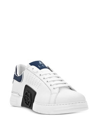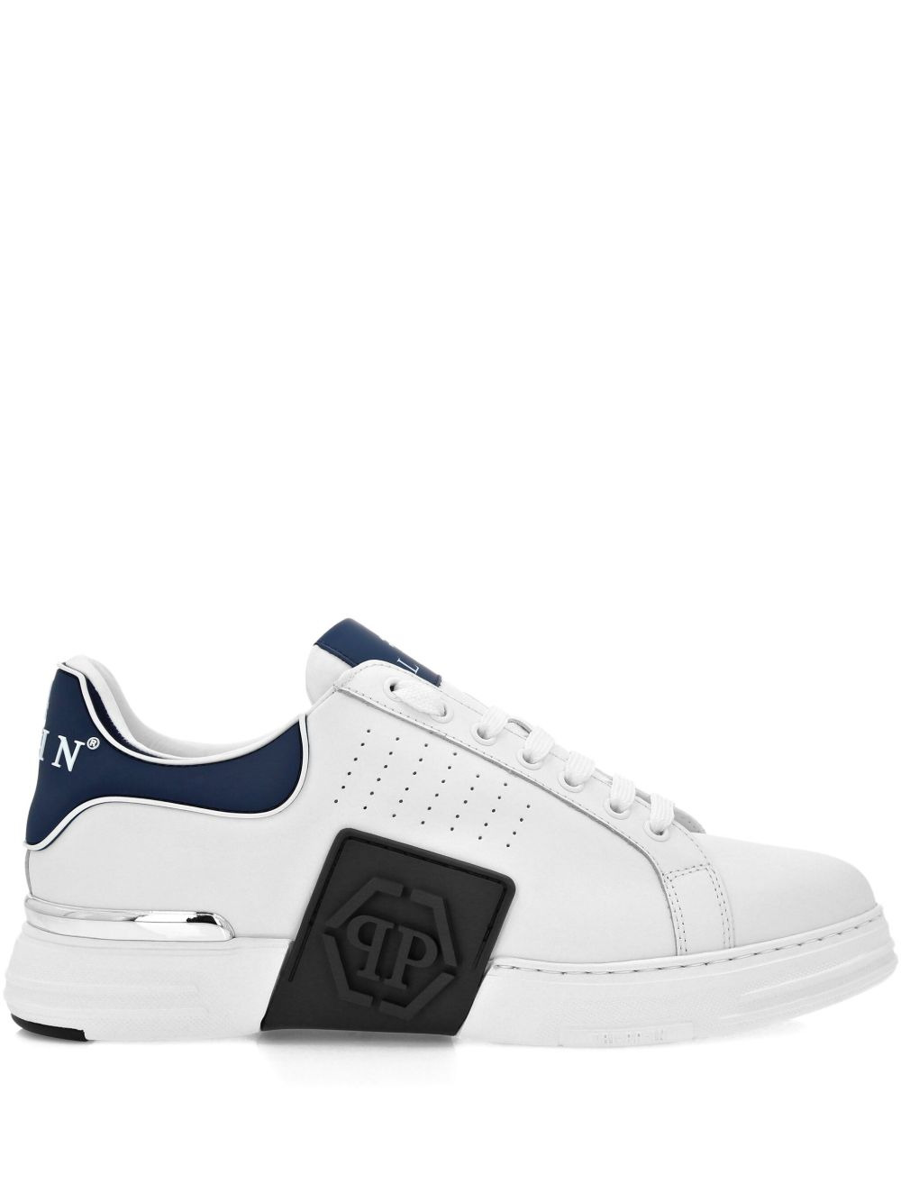 nappa-leather low-top sneakers Highlights - White and dark blue - Perforated detailing - Leather - Black logo plaque Made in Italy Composition Outer: Calf Leather 100%, PVC 59%, Polyurethane 41% Lining: Calf Leather 100% Sole: Synthetic Rubber 100%