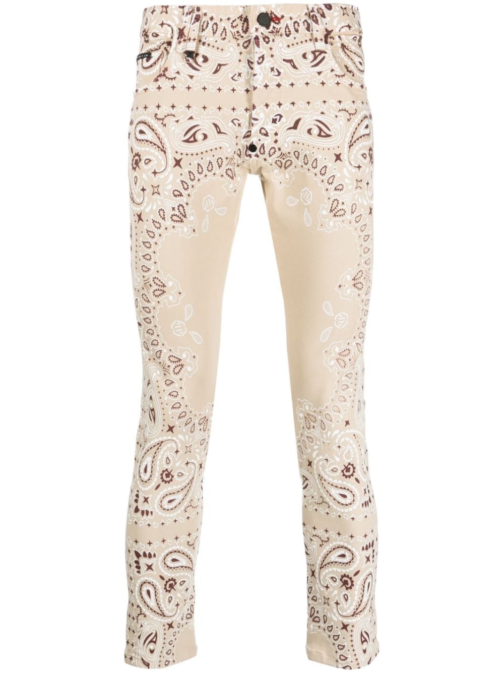 bandana-print skinny jeans Highlights - Off-white - Stretch-cotton - Skinny cut - Paisley print - Bandana print - Low-rise - Belt loops - Front button and zip fastening - Classic five pockets Imported Composition Outer: Polyester 100%, Cotton 98%, Spandex/Elastane 2% Lining: Cotton 100% SIZE & FIT Model measurements Height 6 ft 0 in(1.84 m) Bust/Chest 35.82 in(91 cm) Hips 37 in(94 cm) Waist 28.34 in(72 cm) FittingInformation Designed for a skinny fit, these jeans offer a close fit throughout Constructed from stretch denim, this piece offers a stretch fit with durability This piece fits true to size – take your usual size