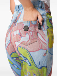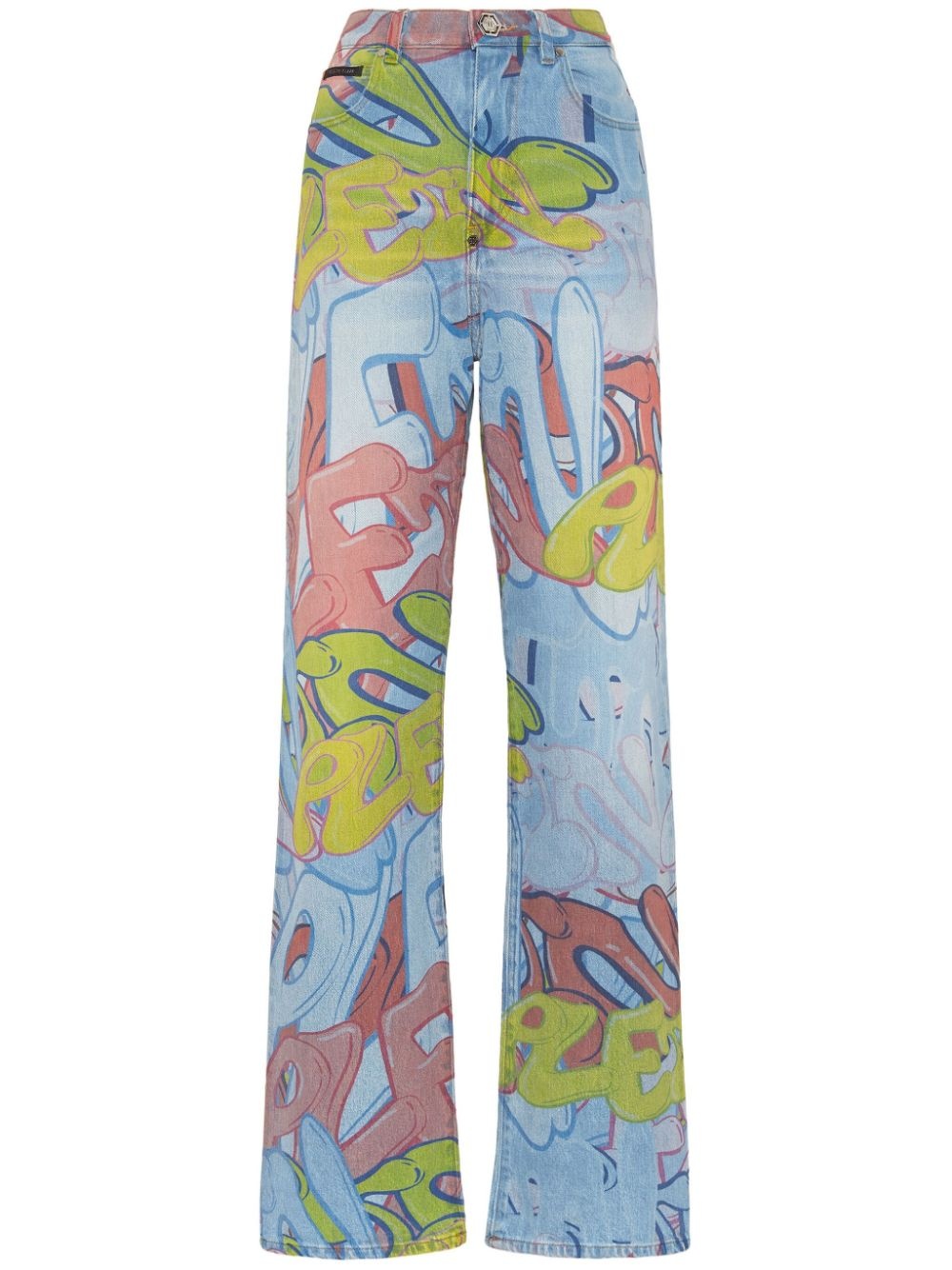 Palace Fit Bombing high-rise wide-leg jeans Highlights - Light blue/multicolour - Cotton blend - Washed denim - Whiskering effect at the thighs - All-over graffiti print - Logo plaque - Mini logo tag - High-waisted - Belt loops - Front button and zip fastening - Classic five pockets - Wide leg Made in Italy Composition Cotton 99%, Elastane 1%