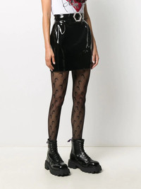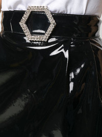 patent mini skirt Highlights - Black - Patent - Rhinestone embellishment - High waist - Belted waist - Rear zip fastening - Thigh-length Imported Composition Outer: Polyurethane 51%, Polyester 49% Lining: Polyester 97%, Spandex/Elastane 3% SIZE & FIT Model measurements Height 5 ft 9 in(1.75 m) Bust/Chest 32.67 in(83 cm) Hips 36.22 in(92 cm) Waist 24.8 in(63 cm) FittingInformation This piece fits true to size. We recommend you get your regular size Cut for a slim fit Designed for a close fit at the waist. If you like a looser fit, get one size up Made with a mid-weight fabric Washing instructions Dry Clean Only