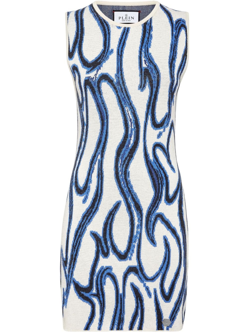 patterned-jacquard flame-motif mini dress Highlights - White - Crew neck - Sleeveless - Crystal embellishment - Straight hem Made In Italy Composition Cotton 100%