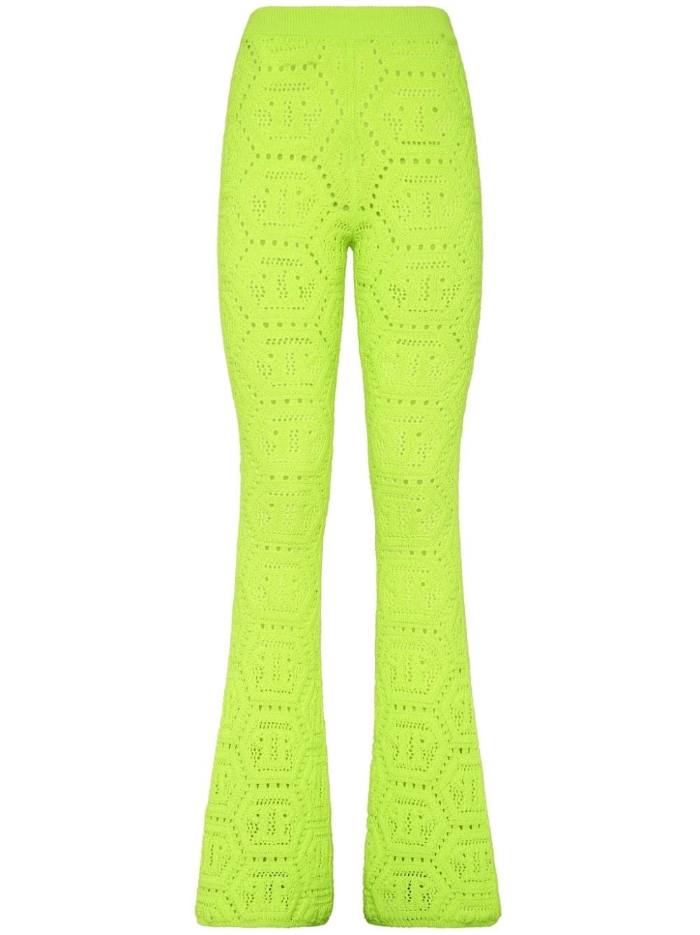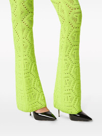 patterned-knit flared trousers Highlights - Fluorescent yellow - Wool blend - Patterned intarsia knit - Perforated detailing - Slip-on style - Flared design Made in Italy Composition Acrylic 50%, Wool 50% Washing instructions Read Manufacturer Guidelines