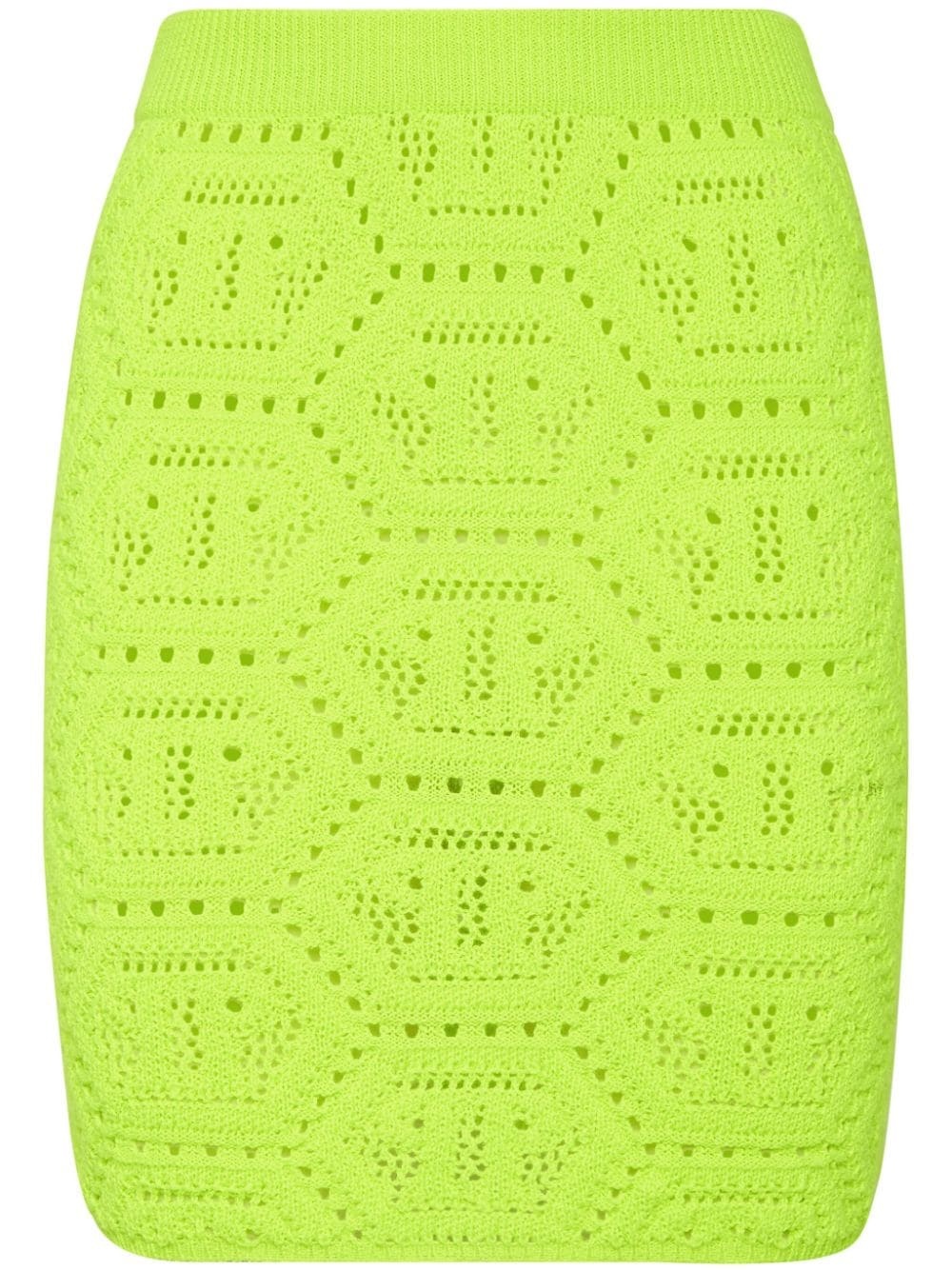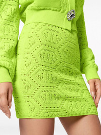 monogram-knit mini skirt Highlights - Fluorescent yellow - Wool blend - Patterned intarsia knit - Perforated detailing - Slip-on style - Thigh-length - Straight hem Made in Italy Composition Wool 50%, Acrylic 50% Washing instructions Read Manufacturer Guidelines