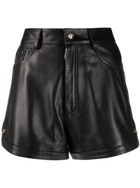 pin-embellished leather shorts black leather high waist belt loops front button and zip fastening classic five pockets Imported Composition Outer: Leather 100% Lining: Polyester 100% SIZE & FIT Model measurements Height 5 ft 10 in(1.79 m) Bust/Chest 34.25 in(87 cm) Hips 37 in(94 cm) Waist 25.19 in(64 cm) FittingInformation This piece fits small – you might want to get one size up Designed to be fitted at the waist and hips, loose over the leg Made with a mid-weight non-stretch fabric Washing instructions Specialist Cleaning