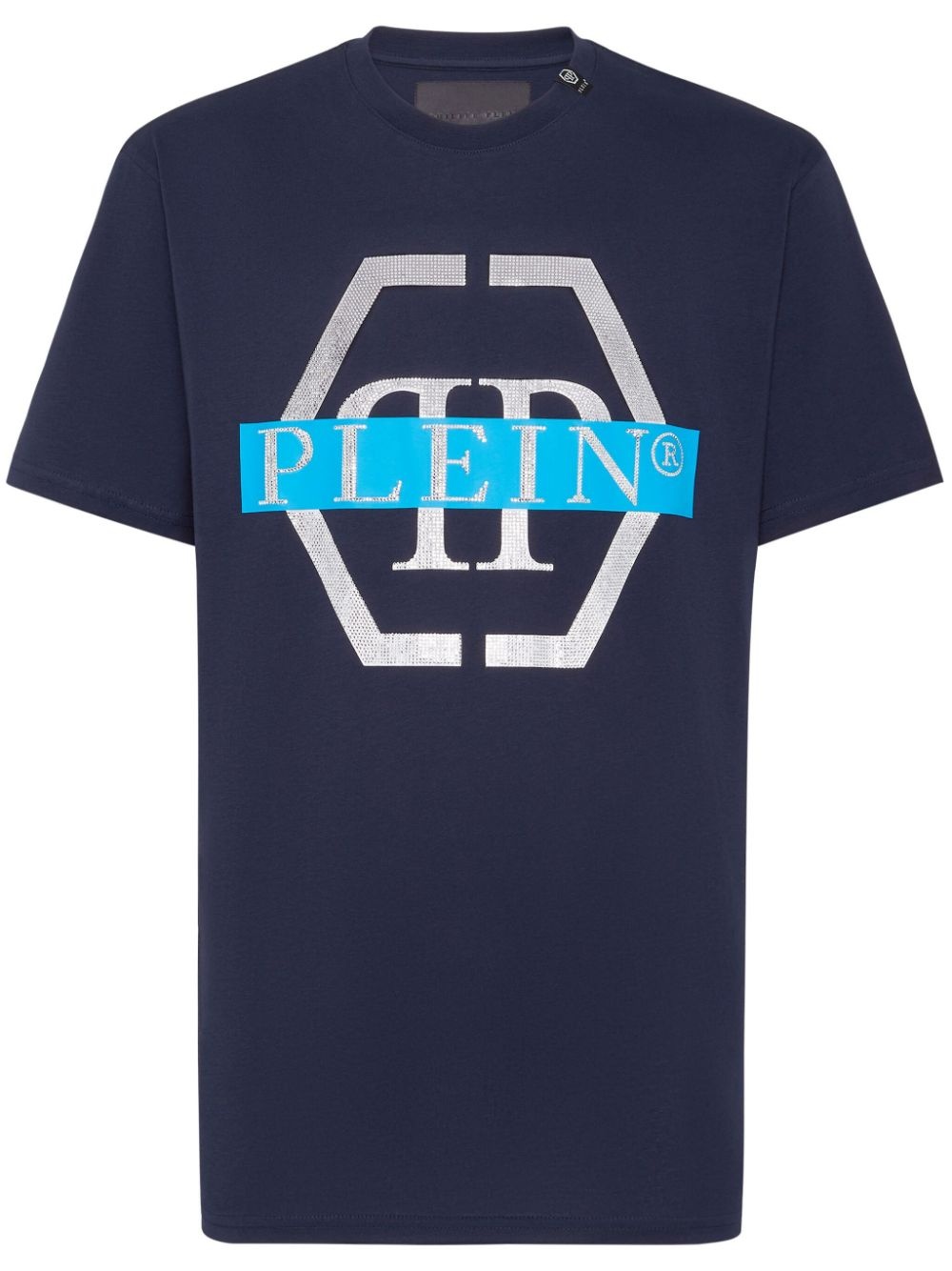 PP Tape-print round-neck T-shirt Highlights - Navy blue - Crew neck - Short sleeves - Straight hem Imported Composition Cotton 100% Washing instructions Read Manufacturer Guidelines